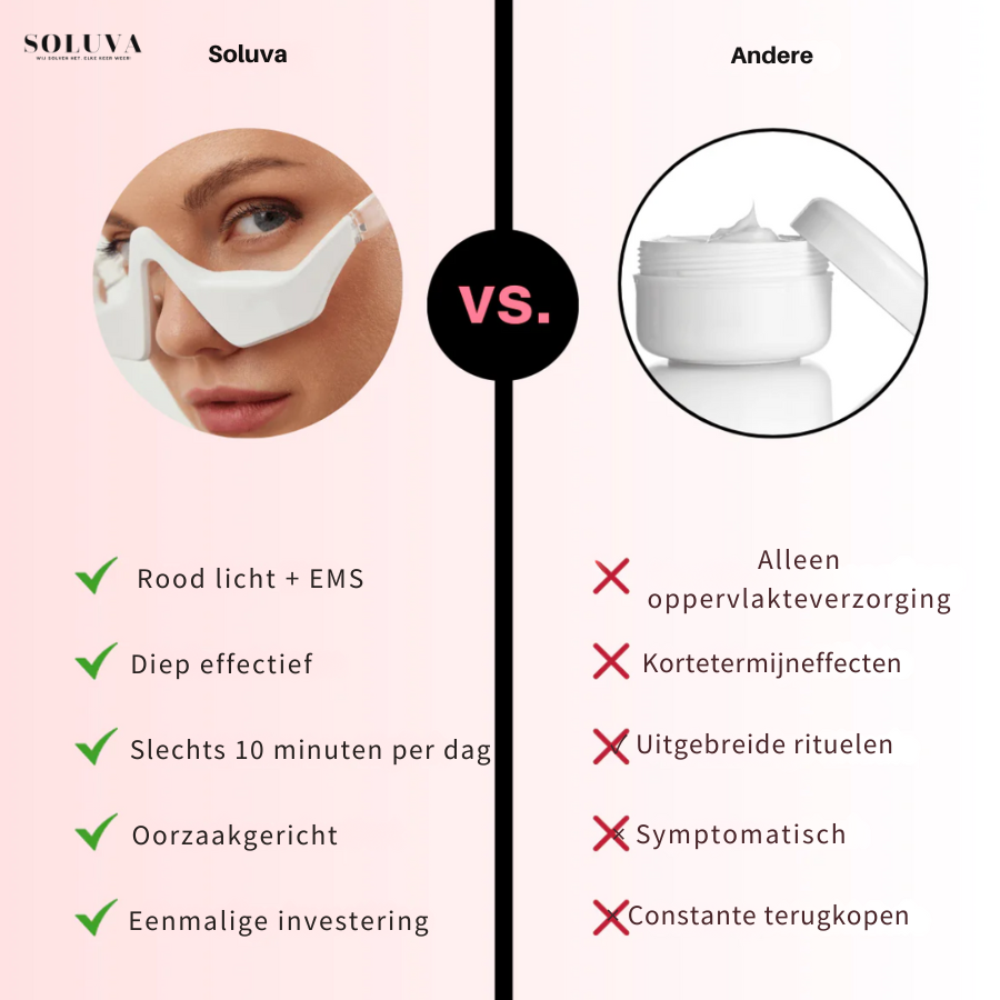 Je hoeft geen dure crèmes of invasieve behandelingen meer te ondergaan. De GlowLift brengt een innovatief rood LED-licht gecombineerd met EMS-technologie direct naar de gevoelige huid rondom je ogen. Dit stimuleert de bloedcirculatie en collageenproductie, wat zorgt voor een frissere en stralendere uitstraling.
