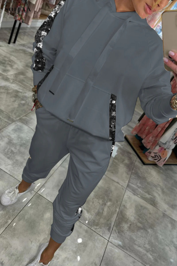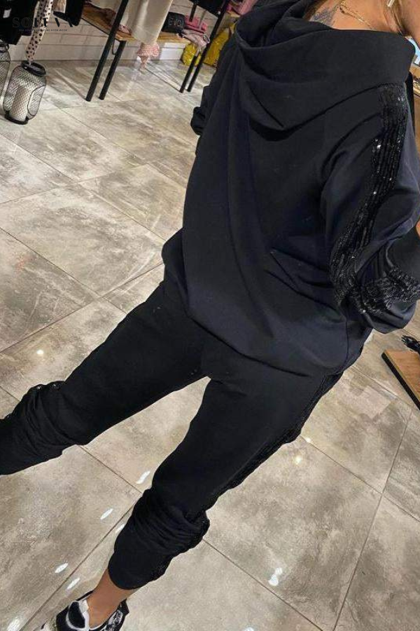 Laat je stralen in de Trendy Comfort Vrouwenset! Deze stijlvolle set combineert moeiteloos glamour en comfort, perfect voor ontspannen dagen of casual uitstapjes. Met een zachte, comfortabele hoodie versierd met pailletten en bijpassende casual broek, voel je je zowel chic als relaxed. Of je nu thuis ontspant of de stad in gaat, dit veelzijdige setje geeft je een trendy look met een vleugje glans. haal vandaag nog je Vrouwenset, er zijn nog slechts een paar maten beschikbaar!